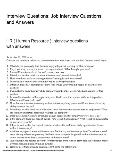 Read Human Resource Interview Questions Answers Reader