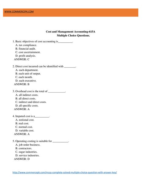 Read Cost Accounting Mcqs With Answers Reader