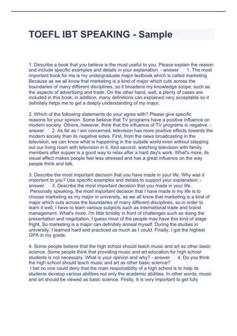 Download Toefl Ibt Speaking Topics With Answers Epub